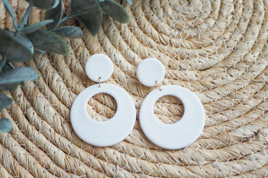 Barbie DIY Set: weiße Ohrringe aus FIMO inkl. Anleitung in Deutsch, Weiß Boho Hippie 60ties Vintage, Schmuck aus Polymerton, Geschenk, Kit