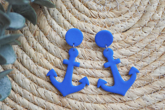 Barbie DIY Set: blaue Anker Ohrringe aus FIMO inkl. Anleitung in Deutsch, Navy Dunkelblau Marine, Schmuck aus Polymerton, Geschenk, Kit
