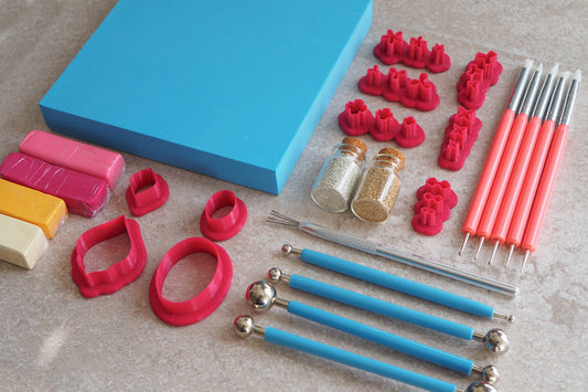 DIY Set "Blütenzauber": Werkzeuge & Material für vielseitige Miniatur Blumen aus Polymerton, Schmuck aus FIMO, Blüten Blätter formen