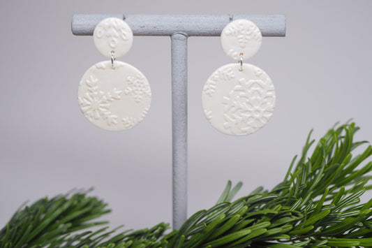 Handgemachte Ohrstecker für den Winter und Weihnachten aus Polymerton, Schneeflocken, winterlicher weihnachtlicher Schmuck
