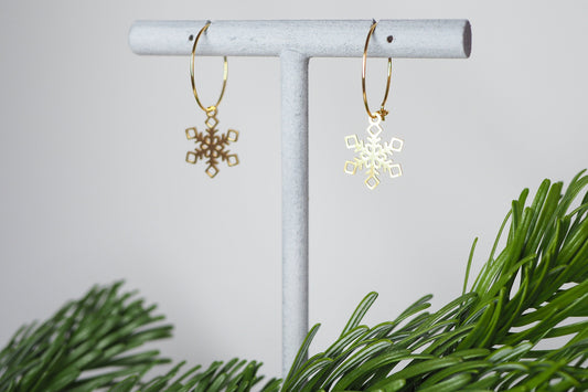 Vergoldete Creolen mit Schneeflocken Anhänger, Winterlicher weihnachtlicher Schmuck, Gold