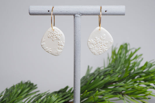 Vergoldete / Versilberte Creolen mit handgemachten Anhängern für den Winter und Weihnachten aus Polymerton, Schneeflocken, Weißer Schmuck