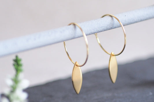 Vergoldete Creolen mit vergoldeten Anhängern, schlicht reduziert modern geometrisch minimalistisch, Stern Mond Plättchen Stab Dreieck