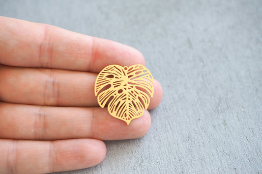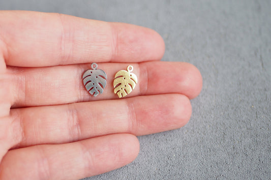 10 Monstera Anhänger, gold Edelstahl, Blatt Fensterblatt Pflanze, Schmuckzubehör