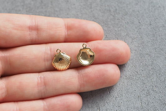 10 Muschel Anhänger, 18 Karat echt vergoldetes Messing, Meer Sommer Strand Insel, Schmuckzubehör