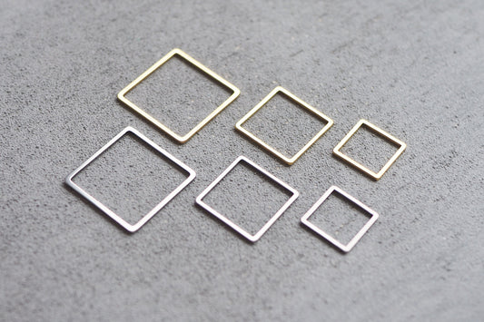 10 quadratische Anhänger o. Verbinder aus Edelstahl in 12mm, 16mm o. 20mm, Viereck hohl Gold Silber, Schmuckzubehör