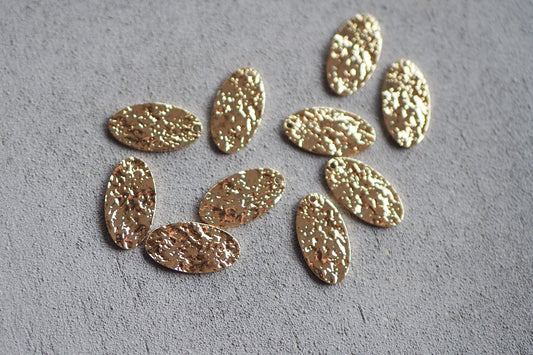 10 ovale 19mm Anhänger, 18 Karat echt vergoldetes, strukturiertes Messing, Oval Ellipse, Schmuckzubehör