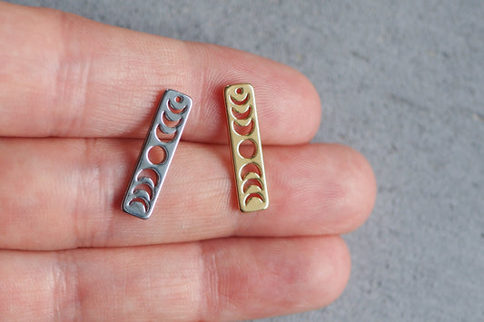 10 Mondphasen Anhänger, 20mm x 5mm, Messing 18 Karat echt vergoldet o. platiniert, Silber Gold Mond Phasen Schmuckzubehör