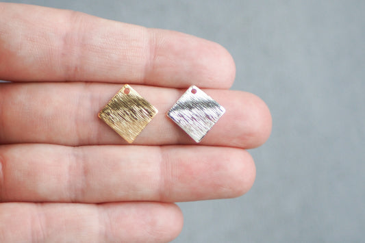 10 quadratische Anhänger aus gebürstetem Rohmessing, geometrisch viereckig, Schmuckzubehör