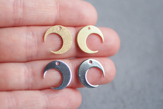 10 Mond Anhänger, 14mm, Messing roh oder platiniert, Silber Gold Sichelmond Mondphasen, Schmuckzubehör