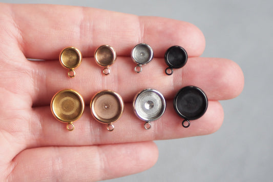 10 Ohrstecker Rohlinge mit Fassung und Öse aus Edelstahl in Gold, Silber, Roségold oder Schwarz, 6mm oder 10mm, Ohrringe Schmuckzubehör