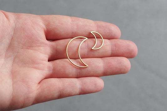 10 Mond Anhänger o. Verbinder aus Edelstahl, 16mm o. 26mm, Mondsichel Sichel hohl, Gold oder Silber, Schmuckzubehör