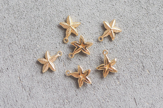 10 süße Seestern Anhänger, 18 Karat echt vergoldet oder echt platiniert, Star Fish Muschel Meer Sommer, Schmuckzubehör