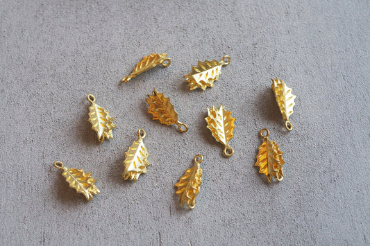 10 Verbinder Blatt Stechpalme aus Rohmessing, Schmuckzubehör