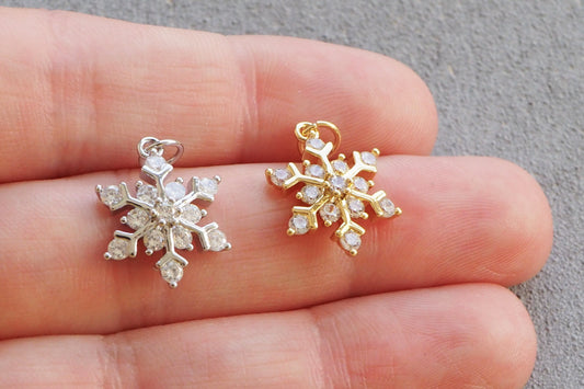 10 Zirkonia Schneeflocken Anhänger, 17x13mm, Messing echt vergoldet o. platiniert, Eisblume Schnee Winter Kristall Zirconia Schmuckzubehör