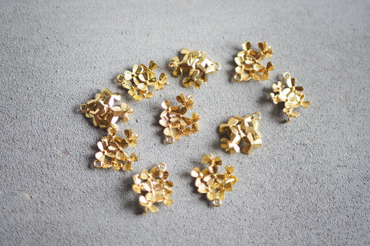 10 gehämmerte, goldene Anhänger, Fächer Blüten Blätter, Metalllegierung, Gold, Schmuckzubehör