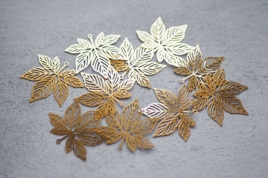 10x filigrane Blatt Anhänger aus Edelstahl, 35mm in Gold oder Silber, Herbst Kastanie Ahorn Blätter, Schmuckzubehör, 18 Karat echt vergoldet