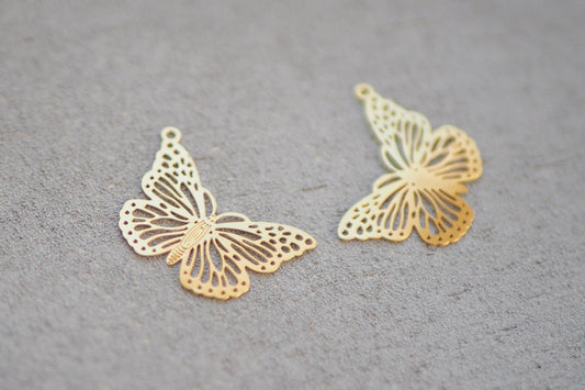 10x filigrane Schmetterling Anhänger aus Edelstahl, 26 x 19mm, 18 Karat echt vergoldet, Frühling Frühlingsboten Sommer, Gold Schmuckzubehör