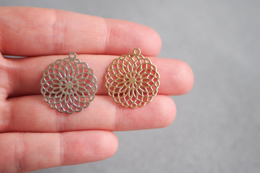10x filigrane Mandala Anhänger aus Messing, 25mm in Gold oder Silber, Blume des Lebens Lebensblume Yoga, Schmuckzubehör