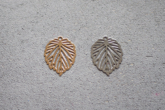 10x filigrane Blatt Anhänger aus Messing, 22mm in Gold oder Silber, Blätter Laub Herbst, Schmuckzubehör