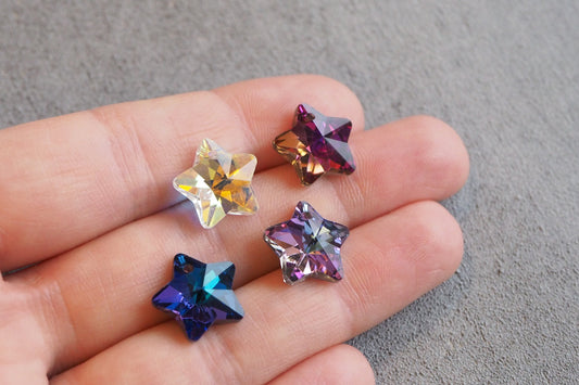 10 Stern Anhänger aus Glas, 13mm x 7mm, facettiert und irisierend, verschiedene Farben weiß gold lila pink orange blau grün, Schmuckzubehör