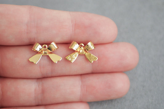 10 Schleifen Anhänger, 10x15mm, echt vergoldetes Messing, Weihnachten, Schmuckzubehör