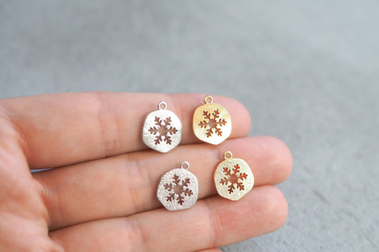 10 runde Anhänger mit Schneeflocke aus Messing, echt vergoldet o. platiniert, Schmuckzubehör