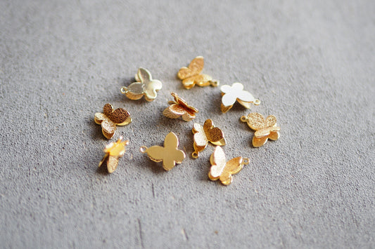 10 Schmetterling Anhänger aus Messing, 8x10mm, 18 Karat echt vergoldet, Flügel Frühling Butterfly Charm, Schmuckzubehör