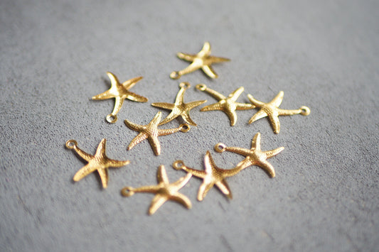 10 Seestern Anhänger aus Messing, 15mm, 18 Karat echt vergoldet, Muscheln Meer Sommer Strand Insel Seestern Muschel, Schmuckzubehör