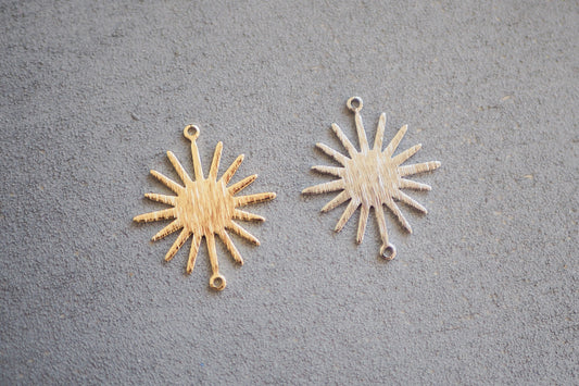 10 Sonnen Verbinder aus Messing echt vergoldet o. platiniert, 26mm x 22mm in Gold oder Silber, Sonnenfinsternis Sonne Mond, Schmuckzubehör