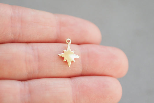 10 Stern Anhänger aus Messing 18 Karat echt vergoldet, 14mm x 11mm, Nordstern Polarstern Weihnachtsstern, Schmuckzubehör Gold