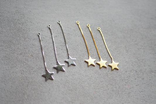 10 Stern Anhänger an Kette aus Messing, echt vergoldet o. platiniert, 56mm x 12mm, Weihnachten Sterne Ketten, Schmuckzubehör Gold Silber