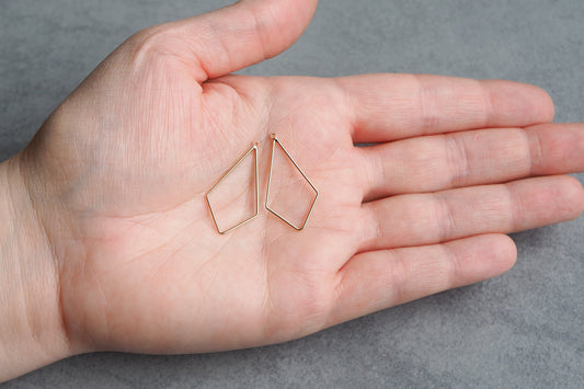 10 rautenförmige Rahmen Anhänger aus Messing, 18 Karat echt vergoldet, 28mm, eckige Tropfen, Charm Schmuckzubehör