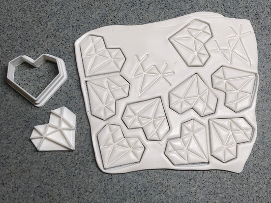 Ausstecher Cutter Form für Modelliermasse, Origami Herz mit passendem Stempel, Werkzeug für Schmuckherstellung mit Fimo und Co.