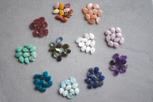 10x Edelstein Perlen 13x13mm, facettiert mit Querbohrung, Träne Tropfen Labradorith Aventurin Opalit Tigerauge Onyx Turmalin, Schmuckzubehör