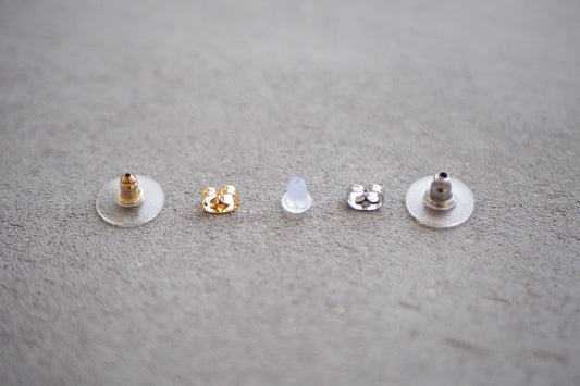 50x Verschlüsse für Ohrstecker, Ohrmutter Stöpsel Poussette Verschluss Nut, Edelstahl, Messing oder Silikon, echt vergoldet, Schmuckzubehör