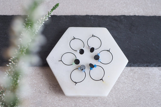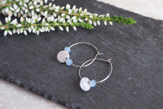 Creolen mit Plättchen Anhänger und Glasschliffperlen, silber platiniert, verschiedenen Farben, schlicht reduziert modern minimalistisch Yoga
