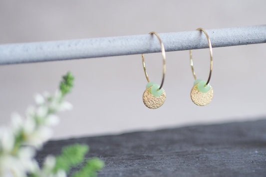 Creolen mit Plättchen Anhänger und Glasschliffperlen, echt vergoldet, verschiedenen Farben, schlicht reduziert modern minimalistisch Yoga