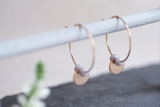 Creolen mit Plättchen Anhänger und Glasschliffperlen, Roségold, verschiedenen Farben, schlicht reduziert modern minimalistisch Yoga