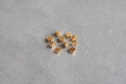 10 Stk. sechseckige Perlen aus Messing, 18 Karat echt vergoldet, 7mm, Spacer Perle Metallperle Sechseck Zwischenperle Gold Schmuckzubehör