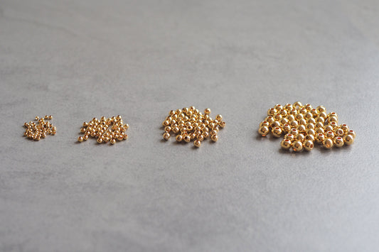 50 Stk. runde Perlen aus Messing, 18 Karat echt vergoldet, 2/3/4/5mm, Spacer Perle Metallperle Kugel Zwischenperle Gold Schmuckzubehör