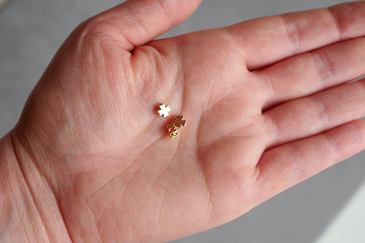 10 Kleeblatt Stk. Perlen aus Messing 18 Karat echt vergoldet 5x5mm, Zwischenperle Gold Schmuckzubehör, Spacer Perle Metallperle Klee Blatt