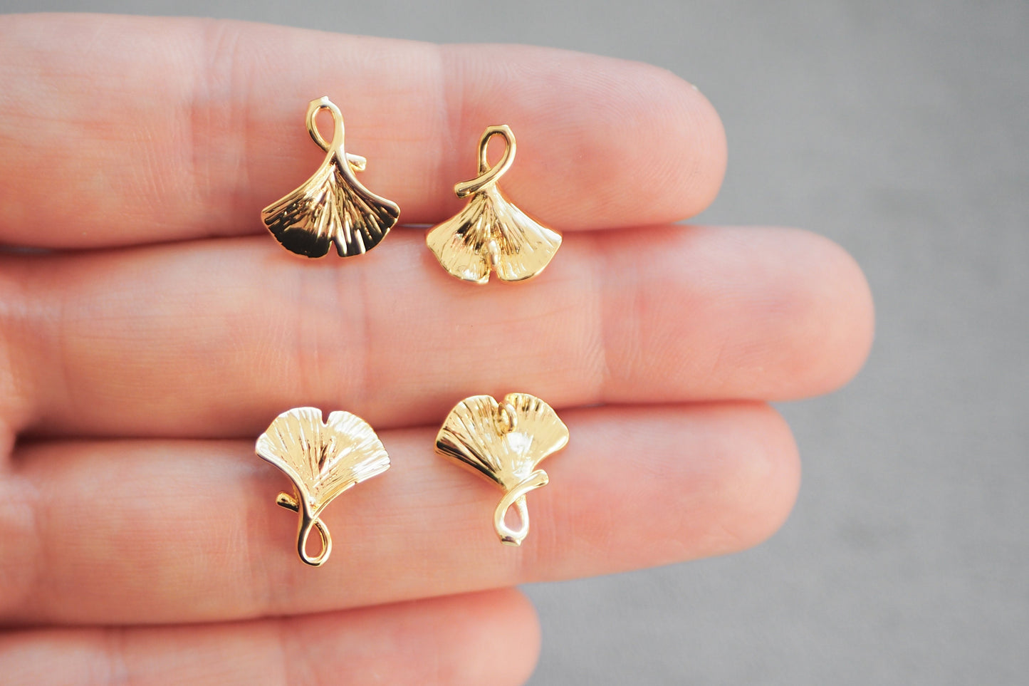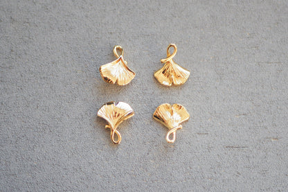 10 Ginkgo Blatt Verbinder, 14mm x 12mm, 18 Karat echt vergoldet, Ginkgoblatt Blätter Laub Herbst, Schmuckzubehör Gold