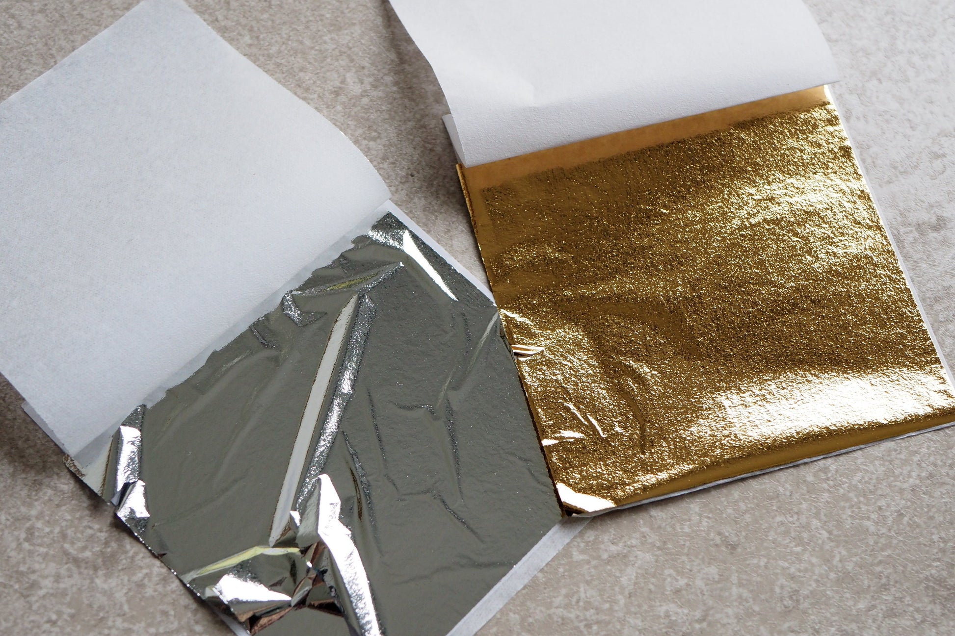 10 Stk. Blattgold Imitat (9,5cm x 8,5cm) in Gold oder Silber zur Schmuckherstellung mit Polymeton (FIMO), Folienpapier, Schlagmetall