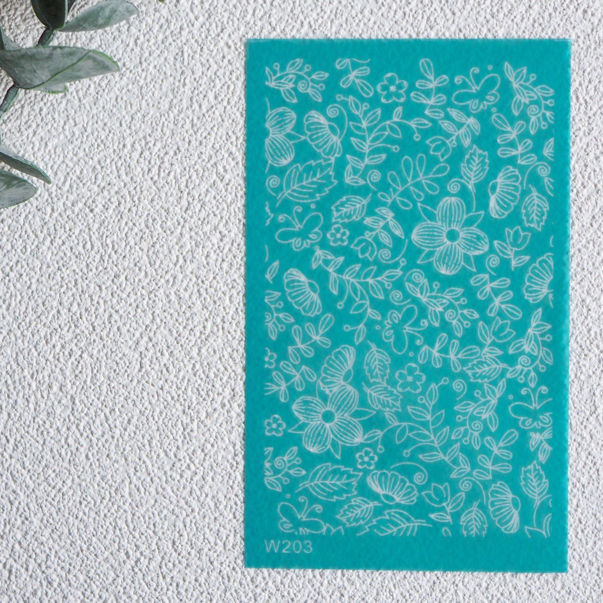 Silk Screen für Polymerton (FIMO), Blumen Zweige Schmetterling, Siebdruck Schablone, 15cm x 9cm, Werkzeug Schmuckherstellung mit Polymer Ton